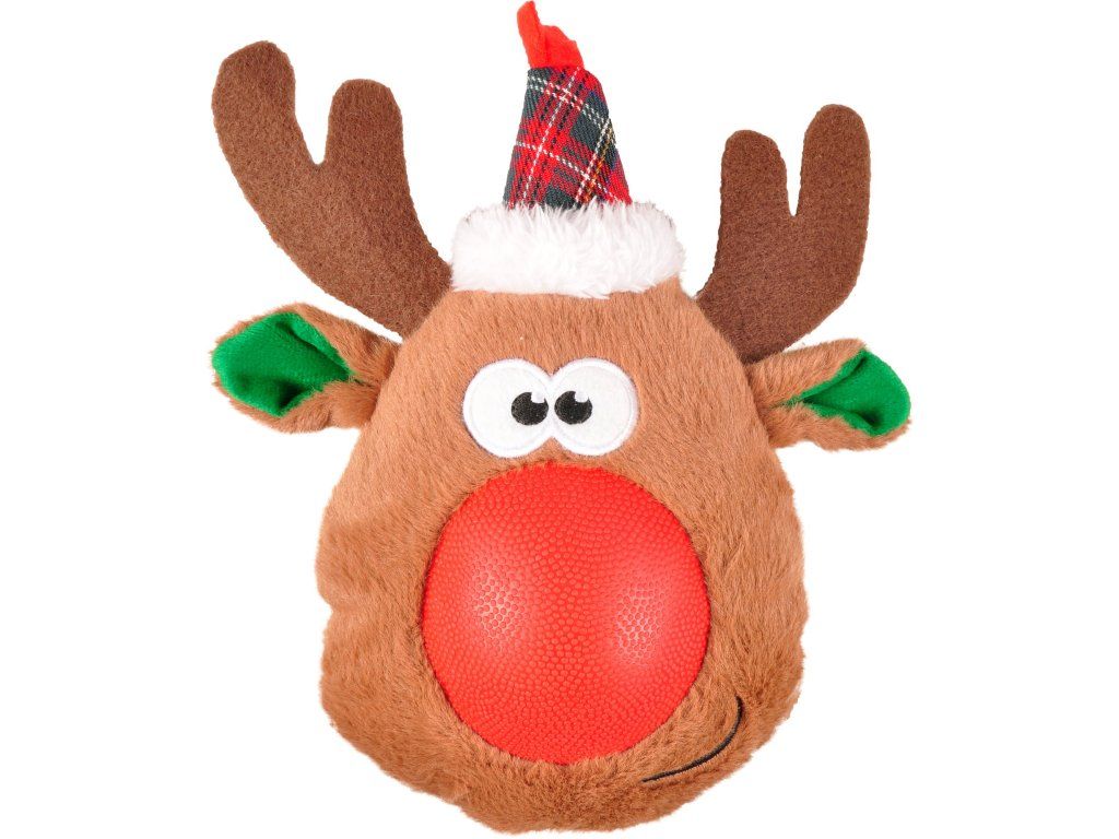 Plyšová hračka ve tvaru zvířecí hlavy a s vánočními motivy zajistí plno zábavy pro Vašeho čtyřnohého kamaráda během celých Vánoc. Váš pejsek se s radostí zakousne do červeného gumového nosu.