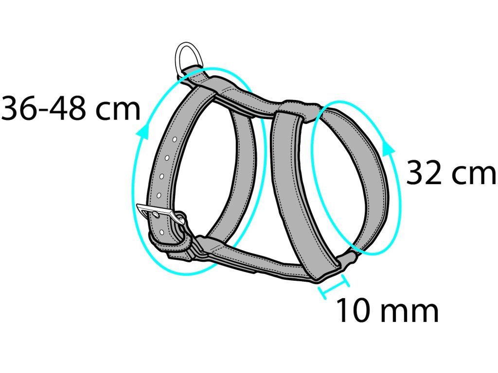 - Nastavitelný postroj s praktickými zacvakávacími přezkami a kovovým kroužkem pro připevnění vodítka