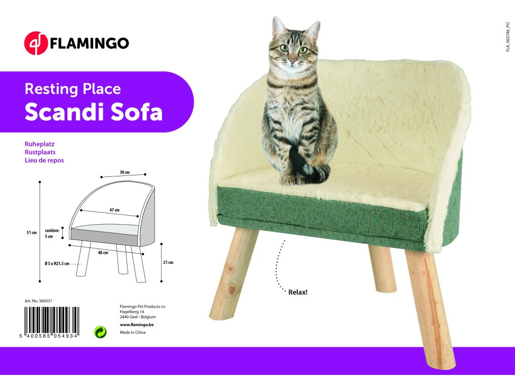 Flamingo Scandi Pohovka pro kočky Přírodní/zelená