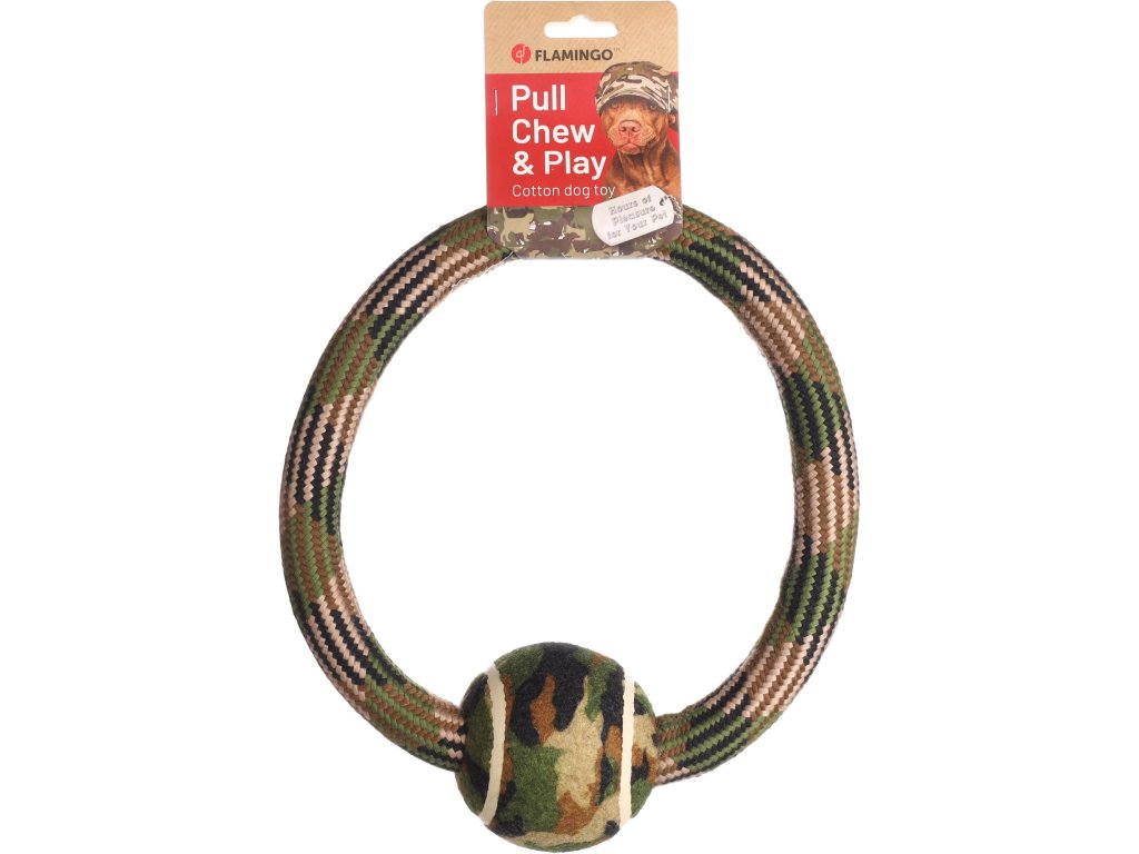 Flamingo Joe Hračka pro psy Kruh s míčkem maskáčový 27cm