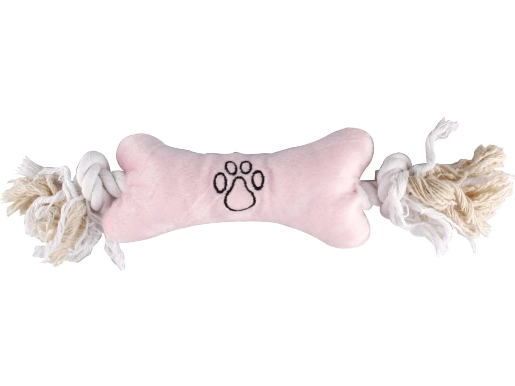 Hýčkejte své štěně s touto měkkou plyšovou kostí s bavlněným lanem. Ideální pro přetahování a aportování.
