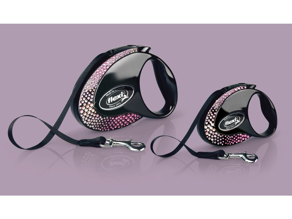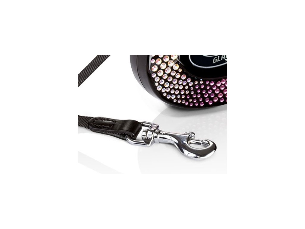S elegantním lesklým povrchem a zdobením vysoce kvalitními krystaly představuje flexi® Glam jedinečné vodítko s puncem luxusu. Kožené zakončení pásku dokonale kombinuje design a funkčnost. Vyberte si ten správný třpyt pro váš velkolepý vstup do psího parku!