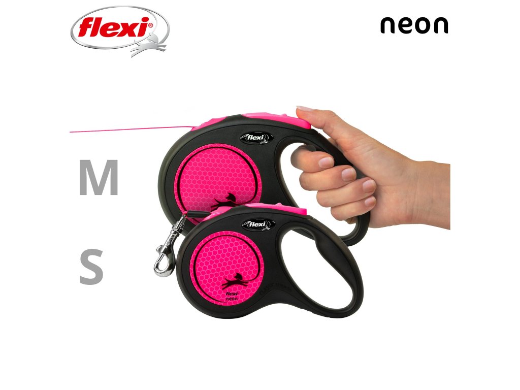 Flexi Vodítko Neon S pásek 5m černo-růžové